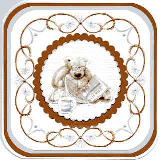 This card was made for my Uncle, I used a pattern from the Hobbydol No76 by Jenine Siemerink, I really like these decoupage images, and as my Uncle is a real softy, I decided to use this one for him.